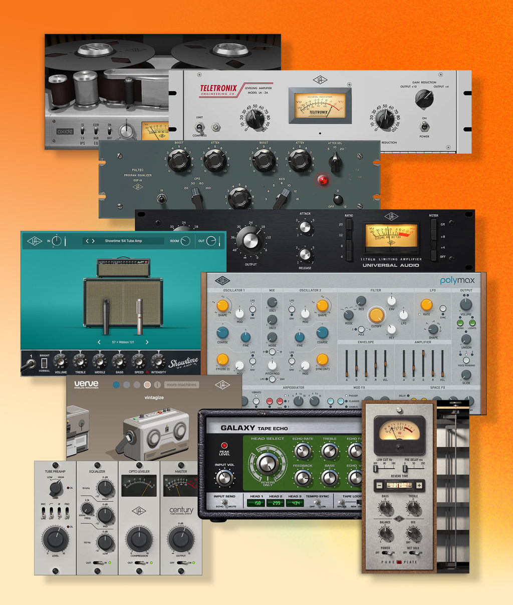 - Produce with a suite of premium UAD plug-ins and instruments including Teletronix LA2A and UA 1176 compressors, Pultec EQs, PolyMAX Synth, Showtime ’64 Guitar Amp, and more
