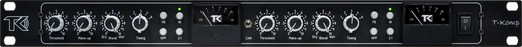 The T-Komp has a unique design which offers a modern take on the old vari-mu ratio curve. The ratio is progressive and increases with the threshold level.