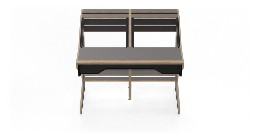 The QUINTAV 2.0 is a sophisticated audio workstation designed to enhance both comfort and sound quality in your workspace. Crafted from high-quality birch plywood, this workstation features an optimized design that ensures superior ergonomics and acoustics. With 2x 9U rack spaces and platforms for near-field monitors, it provides ample room for your audio equipment and ensures your speakers are perfectly positioned.