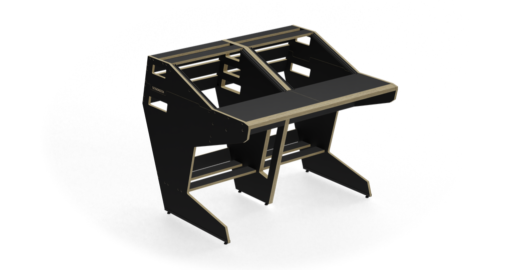 The QUINTAV 2.0 is a sophisticated audio workstation designed to enhance both comfort and sound quality in your workspace. Crafted from high-quality birch plywood, this workstation features an optimized design that ensures superior ergonomics and acoustics. With 2x 9U rack spaces and platforms for near-field monitors, it provides ample room for your audio equipment and ensures your speakers are perfectly positioned.