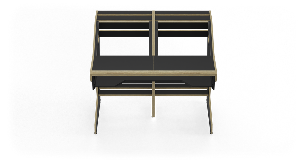- Dimensions, imperial (W x H x D) // 41.89 x 38.78 x 36.22 inThe QUINTAV 2.0 is a sophisticated audio workstation designed to enhance both comfort and sound quality in your workspace. Crafted from high-quality birch plywood, this workstation features an optimized design that ensures superior ergonomics and acoustics. With 2x 9U rack spaces and platforms for near-field monitors, it provides ample room for your audio equipment and ensures your speakers are perfectly positioned.