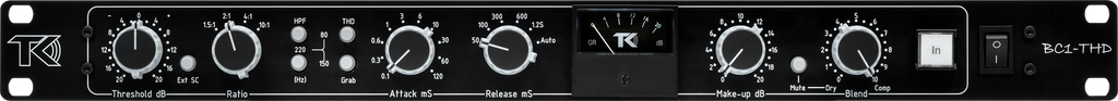 The BC1-THD provides smooth bus compression that applies for both mixing and tracking. The built-in blend control makes it easy to apply parallel compression by adjusting the blend of dry and compressed signal. A switchable sidechain filter can be applied which makes the BC1-THD less responsive to low frequency energy. The THD function adds more harmonics to the signal and the “grab” mode selects a harder threshold knee on all four ratio settings. Smooth and transparent compression will never go out of fashion.